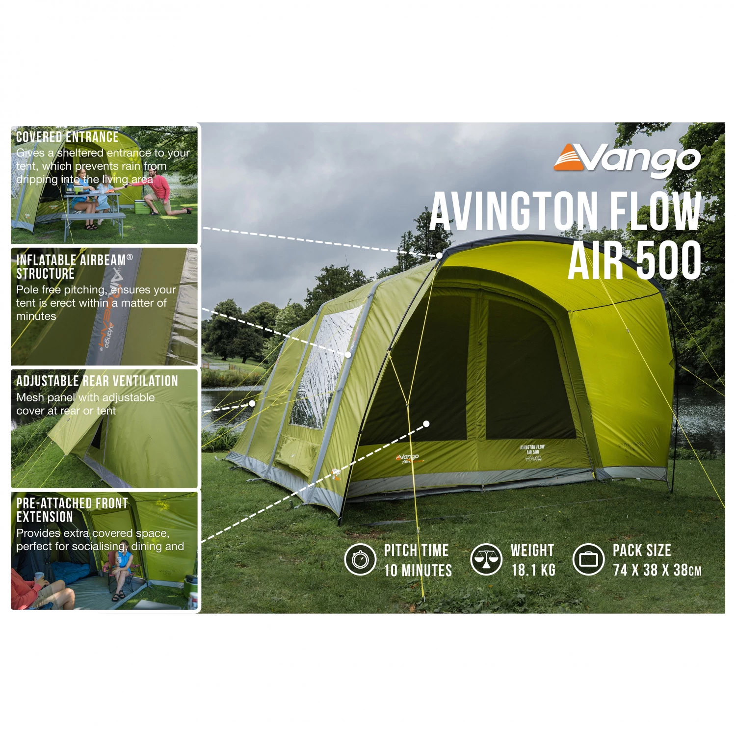 - Aufblasbares AirBeam System ermöglicht einen schnellen Aufbau